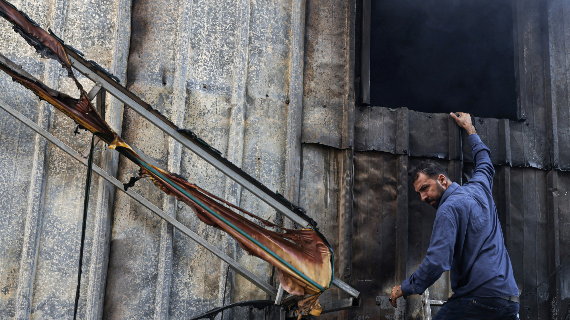 A Palestinian man inspects the damage at the site of an Israeli settlers attack on a plant nursery in the village of Deir Sharaf, west of Nablus, in the occupied West Bank on 9 September 2025 (AFP/Jaafar Ashtiyeh)