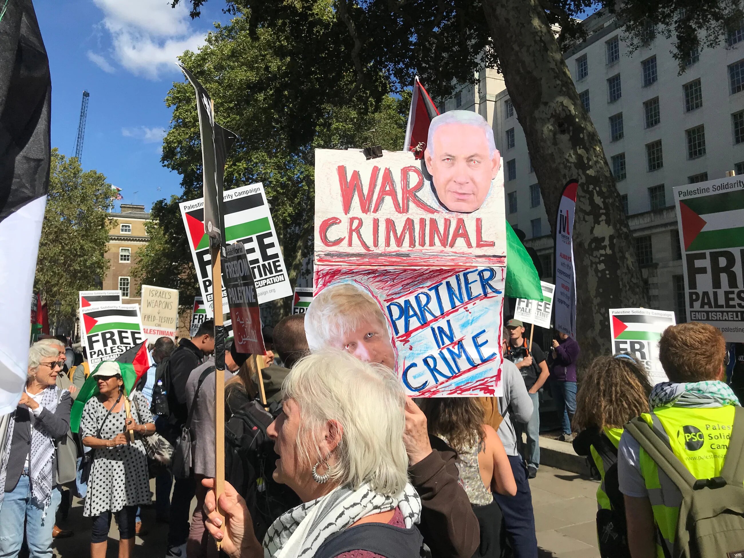 Over a hundred demonstrators staged a protest outside Downing Street against Israel’s Prime Minister Benjamin Netanyahu’s surprise visit to the United Kingdom on Thursday.