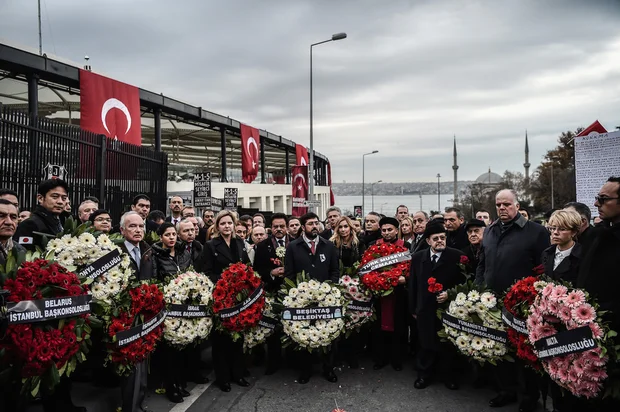 On Monday, senior diplomats from various European countries paid their respects outside the Besiktas stadium, laying wreaths that added to the sea of flowers left by mourners.