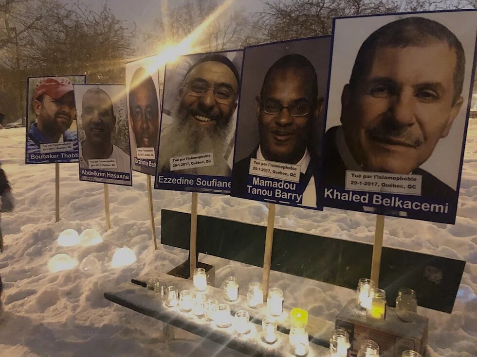 "I'm here to commemorate the loss of the six people, killed due to ignorance of the other," Labdelli told Middle East Eye, standing in front of six large photographs of the men at a candlelit vigil to mark the two-year anniversary of the attack.