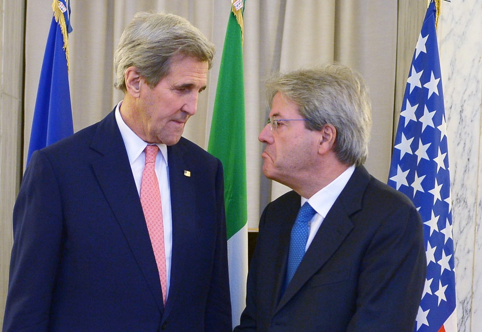 US Secretary of State John Kerry talks with Italy's Foreign Minister Paolo Gentiloni (AFP)