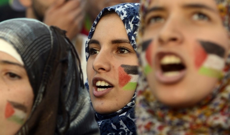 Photo: Young women protest during this summer's 50-day war between Gaza and Israel (AFP)