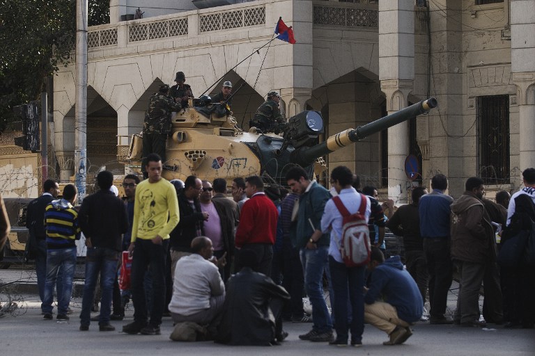 The Egyptian army barricades the Ittihadiya presidential palace after a night of deadly clashes between opponents and supporters of President Mohamed Morsi on 6 December 2012 (AFP)