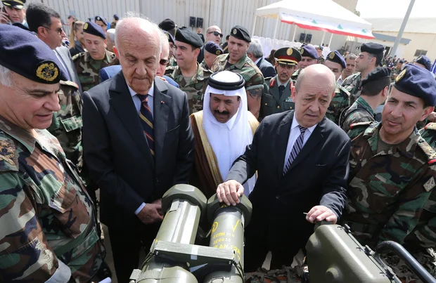 A ceremony marks the shipment of Saudi-funded French weapons to the Lebanese Army at Beirut International Airport in April 2015 (AFP)