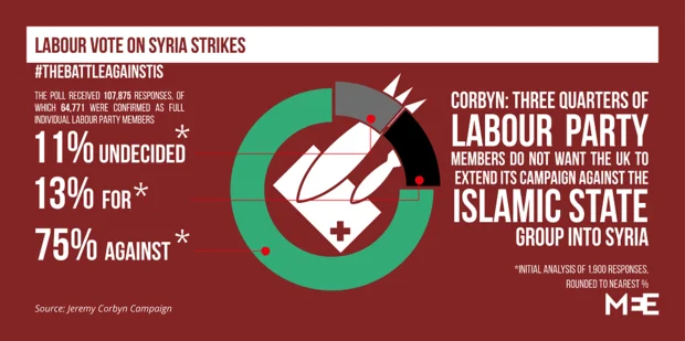 Labour consultation has attracted almost 110,000 replies. 75% of members say #DontBombSyria pic.twitter.com/DWntwKbKKO