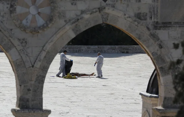 A man lies dead near the site of the al-Aqsa mosque in Jerusalem (Reuters)