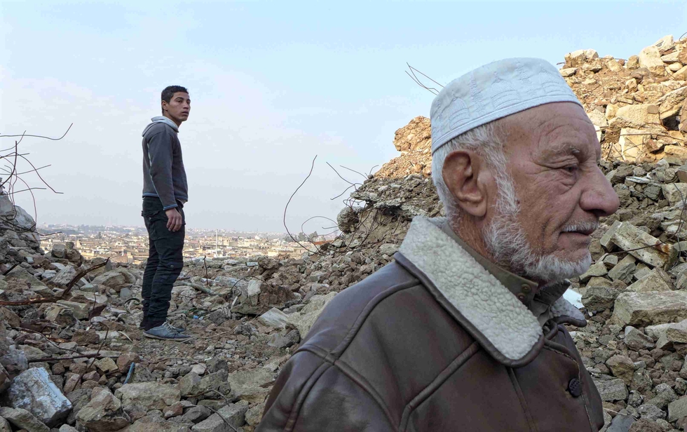 Abu Neshwan, 70, was visiting the site for the first time in almost three years, assisted by a friend who helped him clamber over the rubble.