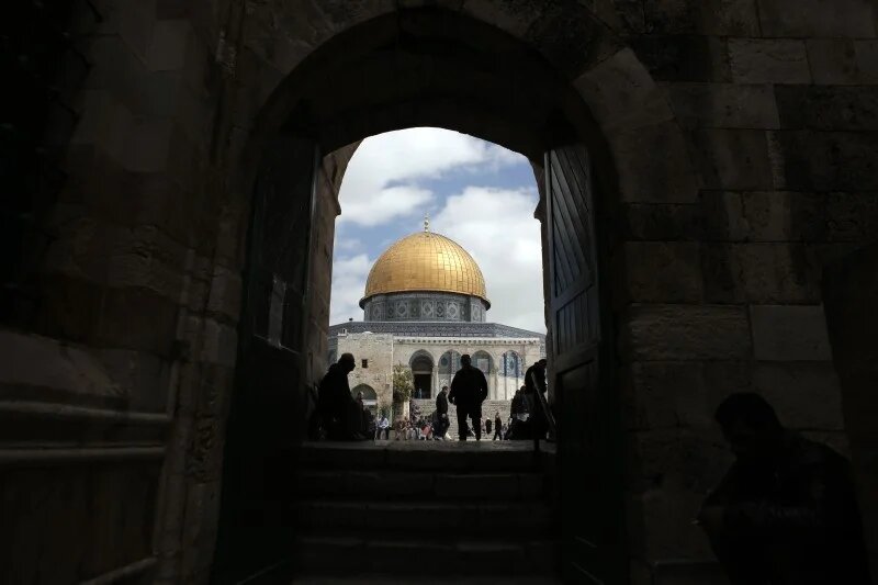 Palestinians walk past the Dome of the Rock at the Al-Aqsa Mosque compound in Jerusalem (AFP)