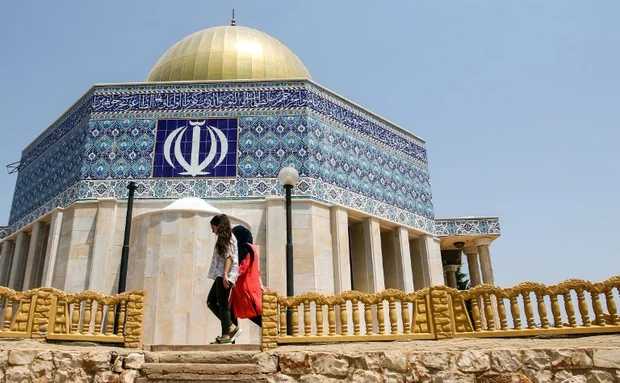 MAROUN AL-RAS, Lebanon – An Israeli drone buzzes overhead, and the midday southern Lebanese sun shimmers on a mini replica Dome of the Rock, an Iranian-funded homage to the holy site in Jerusalem.