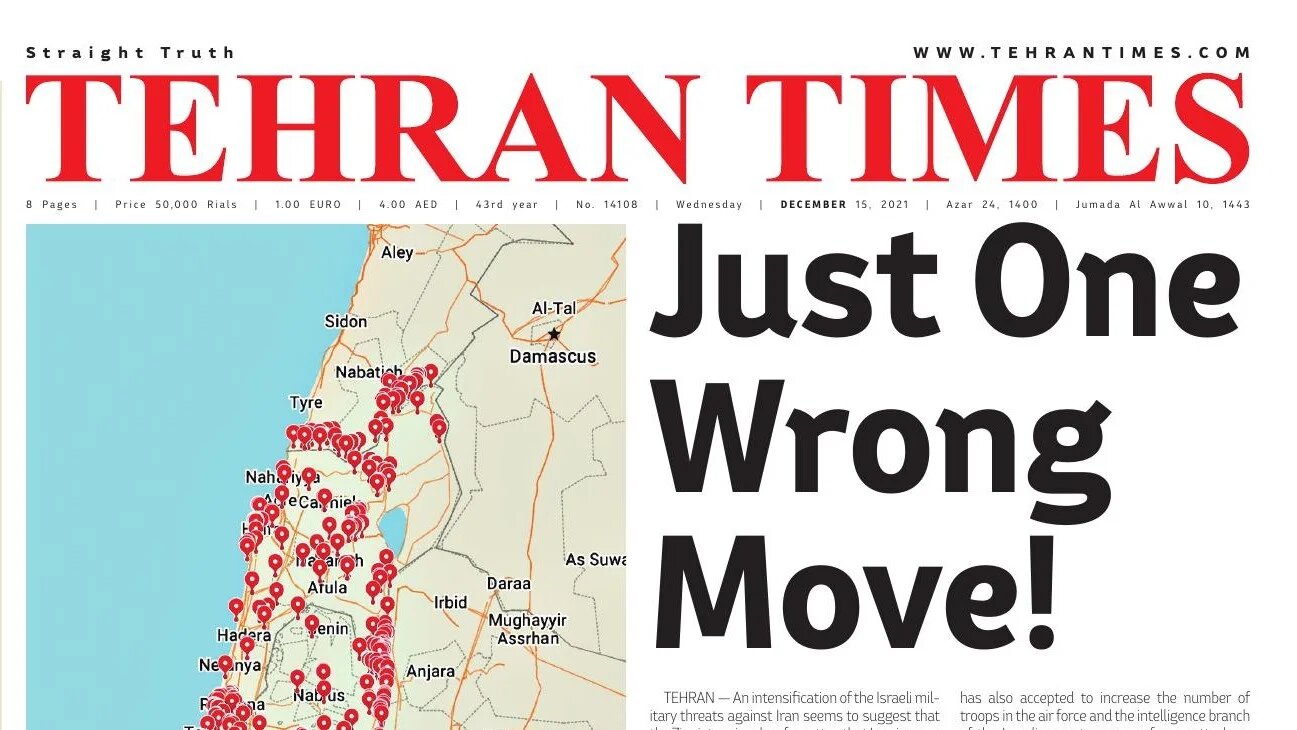 Tehran Times also quoted Supreme Leader Ali Khamenei responding to Israeli military threats against Iran in 2013, saying that "[the Israelis] must know that if they make a mistake, the Islamic Republic will destroy Tel Aviv and Haifa".