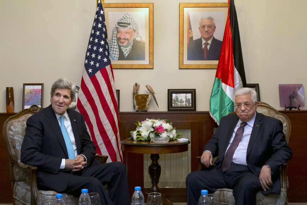 US Secretary of State John Kerry meets with Palestinian president Mahmud Abbas on 26 March (AFP)