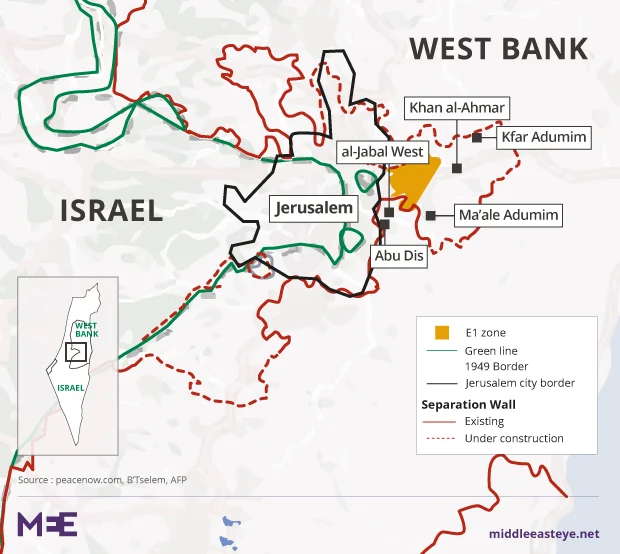Palestinian activists and officials say the scheme to displace Palestinian residents in the area aims to expand illegal settlements, isolate East Jerusalem from Palestinian communities in the West Bank, as well as to effectively cut off the southern and northern West Bank, forcing Palestinians to make even lengthier detours to travel from one place to another.