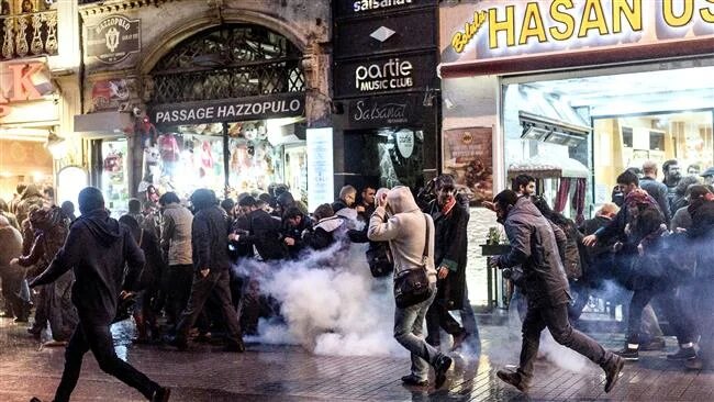 Demonstrations broke out in Istanbul, Ankara, Izmir and Diyarbakir which were met by tear gas and water cannons. Two Kurdish militants were killed later Saturday in Sur after police imposed a curfew.