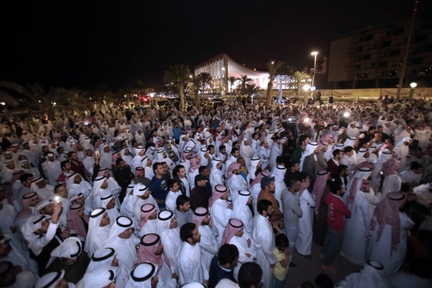 Kuwaitis rally in front of parliament to demand the release of opposition leader Musallam al-Barrak (AFP)