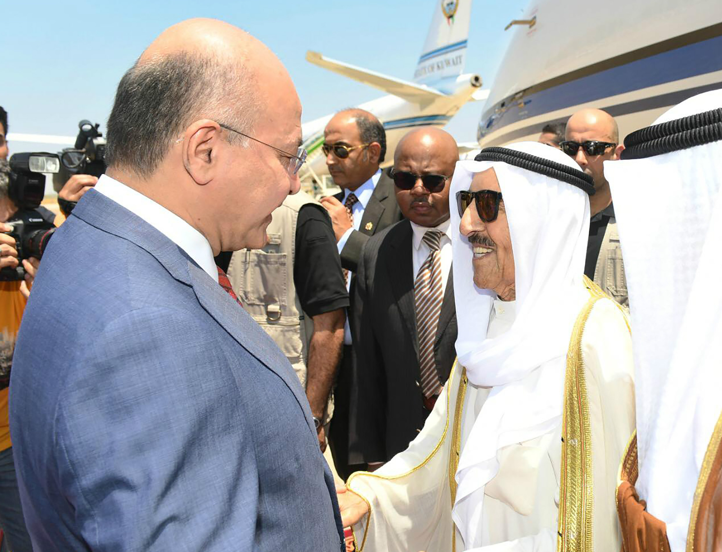 Kuwait's emir arrived on a rare state visit to Iraq on Wednesday where he is expected to discuss escalating regional tensions after attacks on tankers near the Strait of Hormuz.