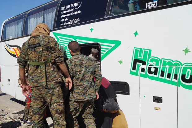RAQQA, Syria – Covered in dust and many suffering injury, the roughly 250 civilians arrived, escorted by fighters from the Syrian Democratic Forces (SDF), at a mosque in the western area of Hawi al-Hawa.