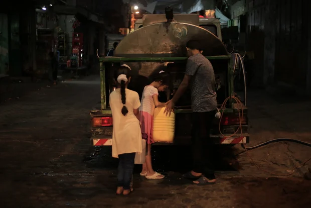Al-SHATI REFUGEE CAMP, Gaza - Every three days, the al-Natour family has two hours to stock up on water.