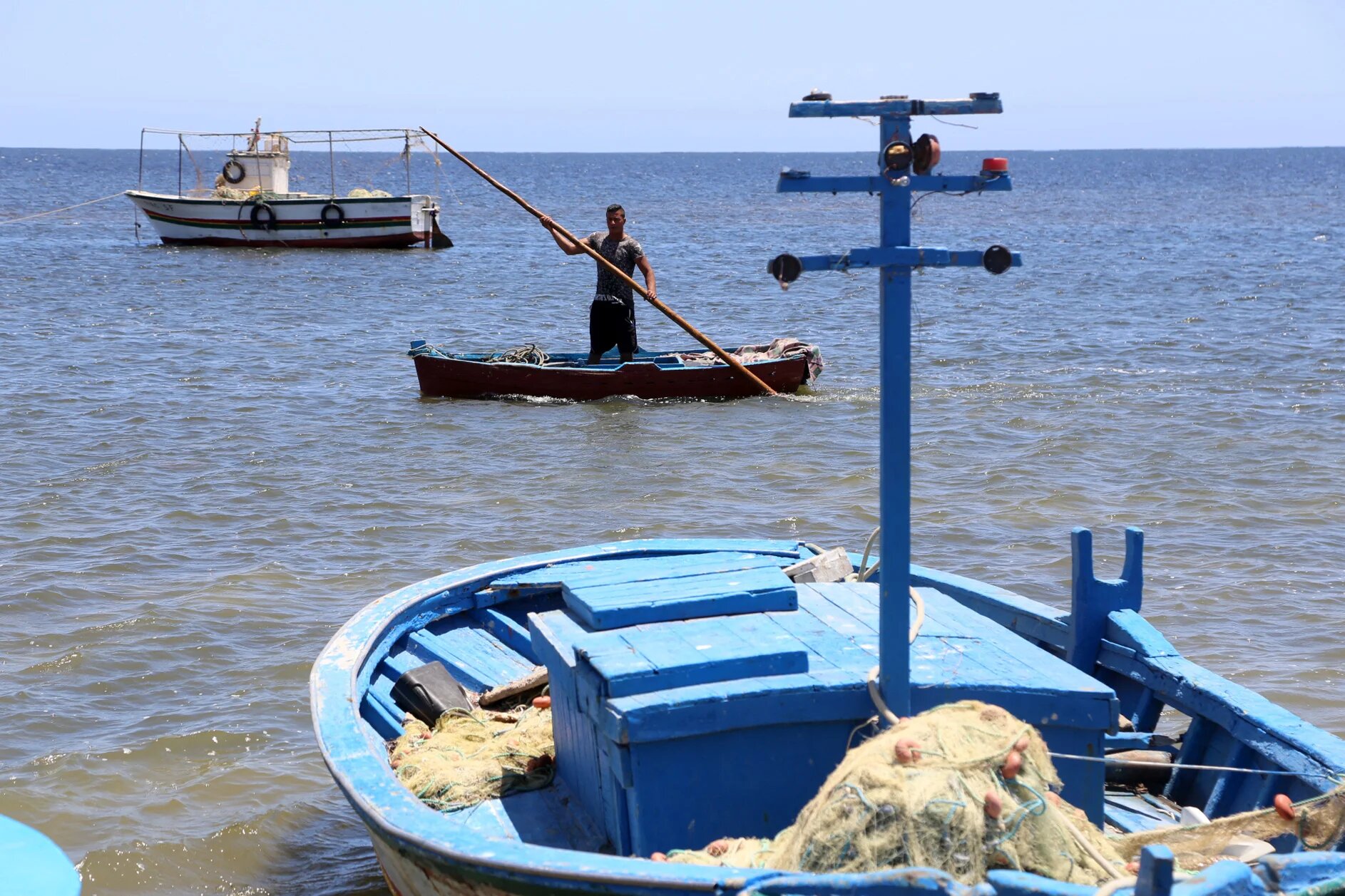 A fisherman stands on his wooden boat at the Mediterranean sea in Tunisia's Kerkennah Islands off Sfax on 5 June 2018 (AFP)