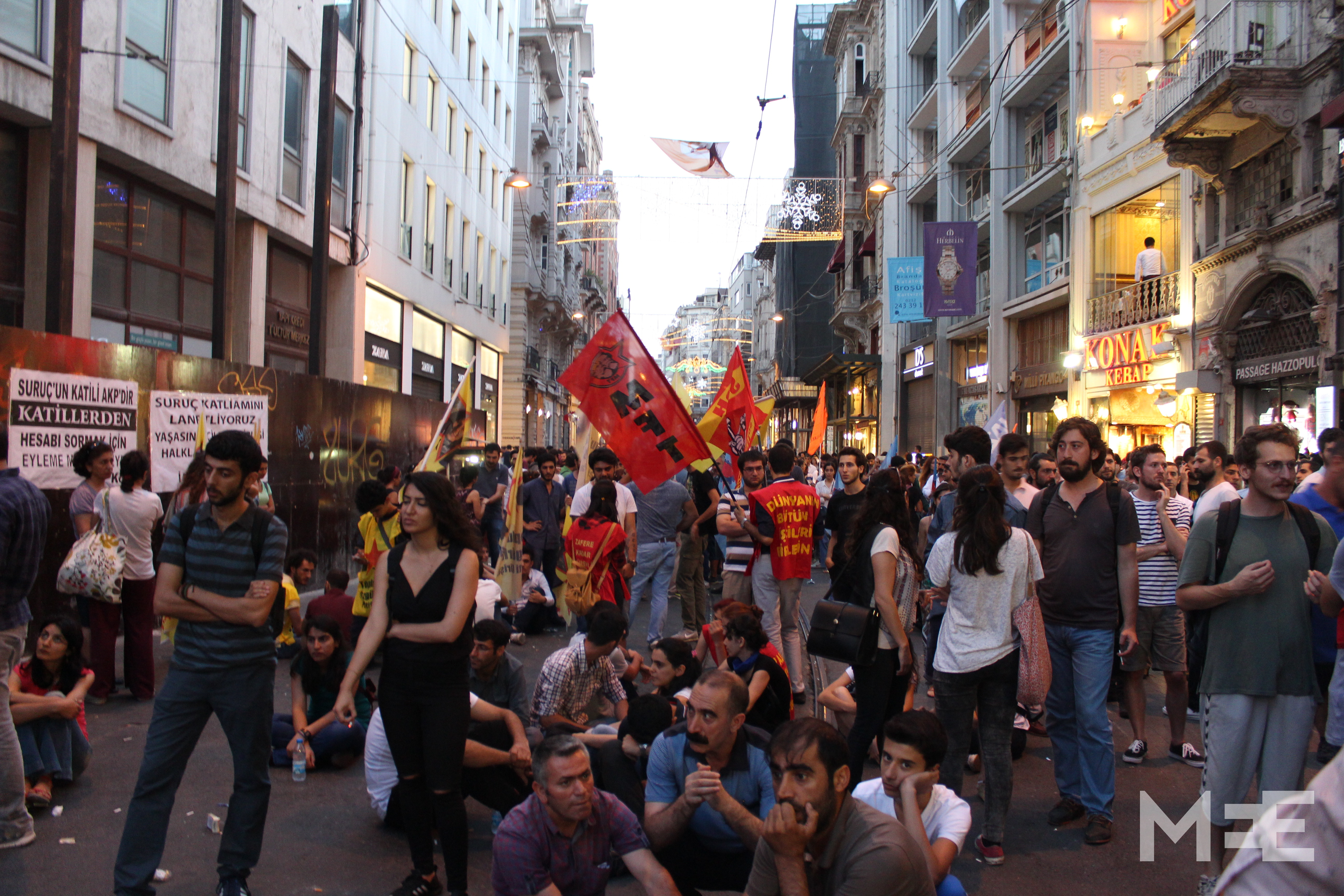MEE's Alex MacDonald was at a protest on Istiklal Avenue in Istanbul on Monday evening. Political activists were giving speeches at the demonstration when police started to fire on the crowd with tear gas seemingly without provocation, he reported. [Photos of the protest at end of story]