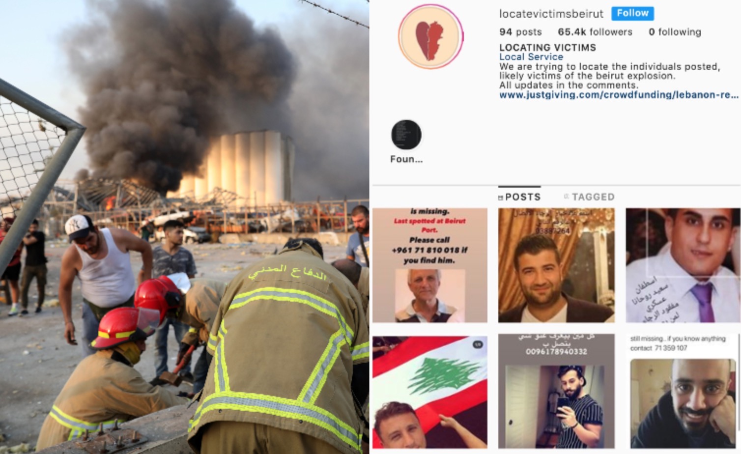 Hours after the explosion took place, an Instagram page called "Locate victims Beirut" was set up to share photos of missing people.