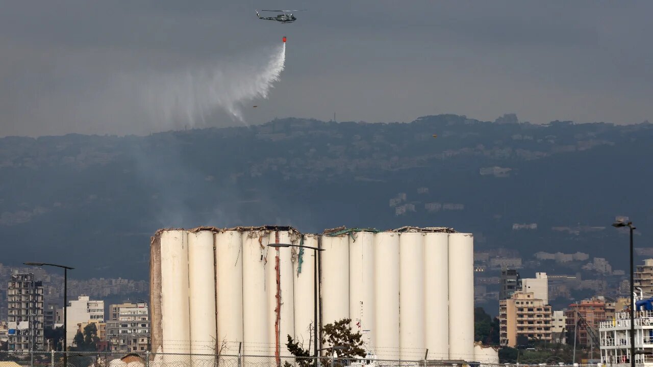 A fire has burned at the northern part of the silos for about three weeks, giving off an orange glow visible at night from nearby neighbourhoods, and Lebanese officials warned last week that part of the silos could collapse.