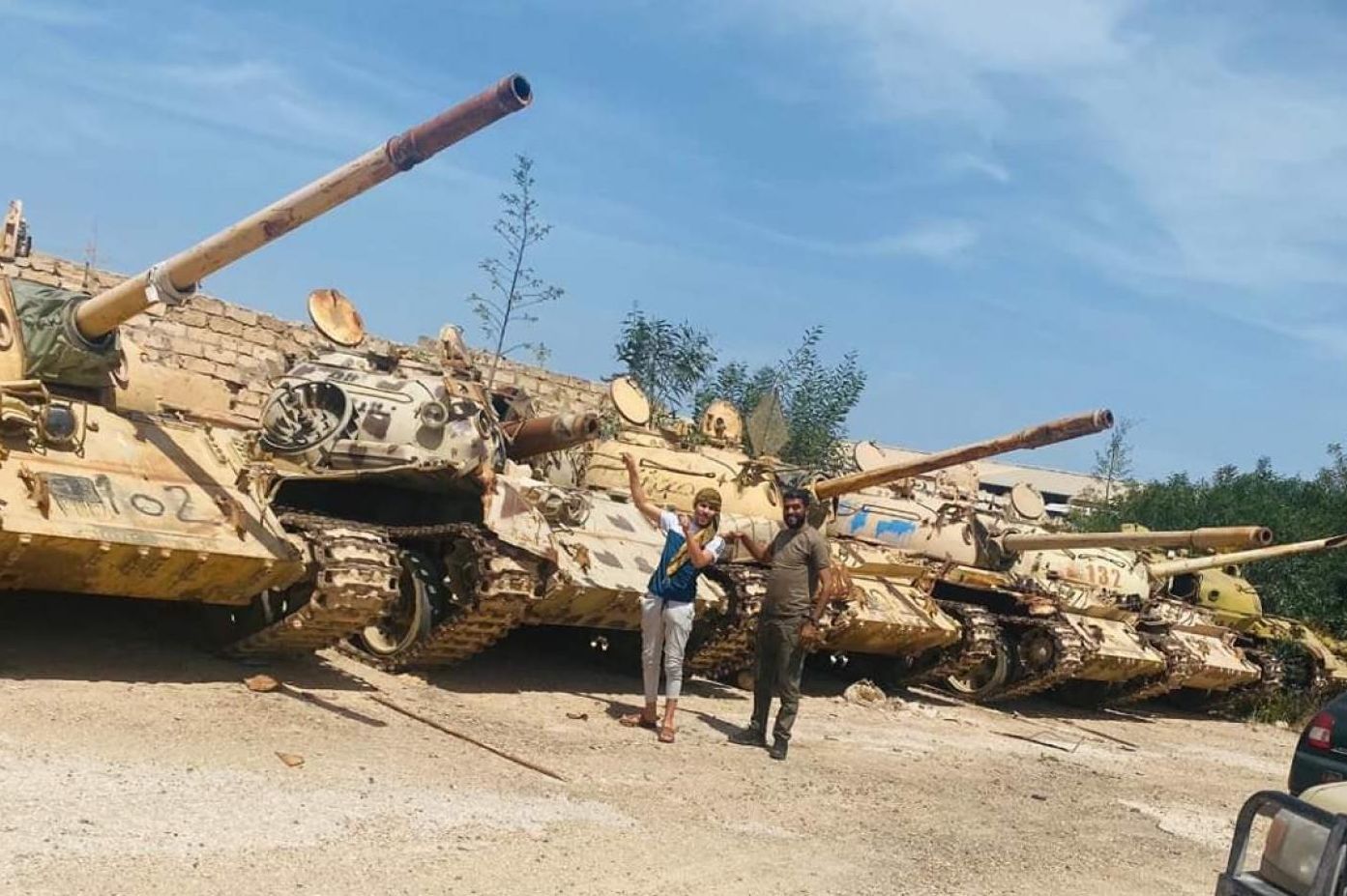 Translation: Footage shows our valiant forces seizing control of two UAE-supplied armored vehicles during our forces' advance in Surman on Monday.
