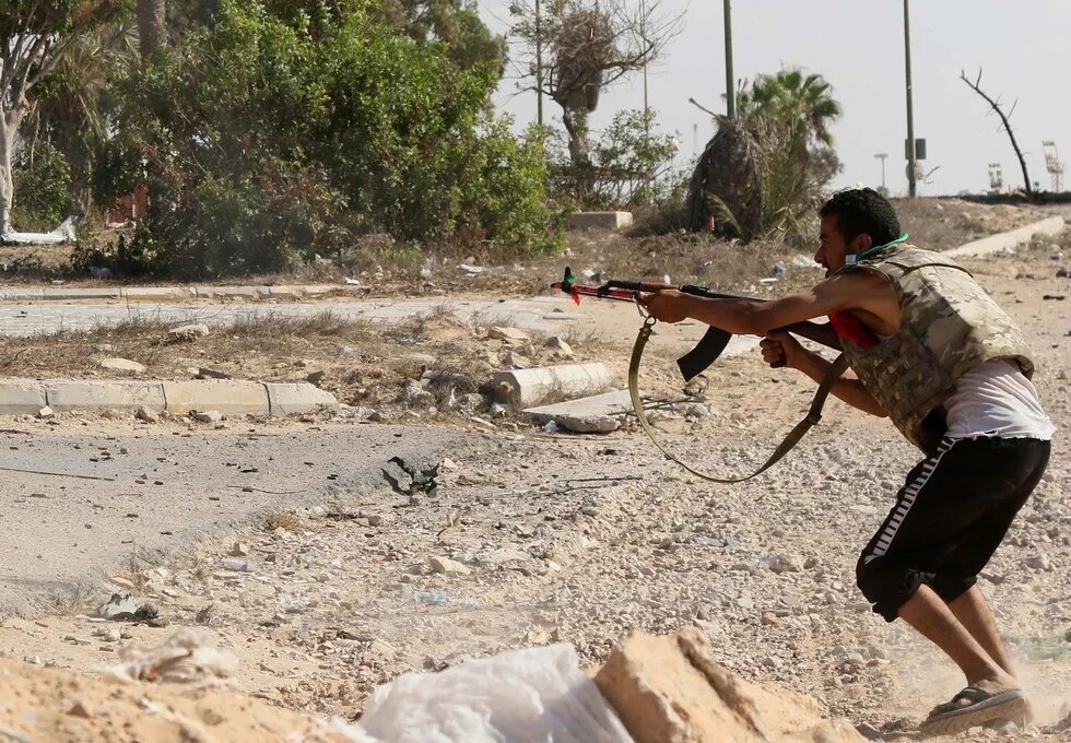 A fighter loyal to Libya's Government of National Accord fires towards positions of the Islamic State group in Sirte's district three on Saturday (AFP)