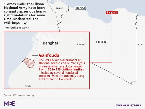 The United Nations-backed Government of National Accord in Tripoli, along with human rights organisations, believe that between 126 to 133 civilian families are being held captive in Ganfouda.