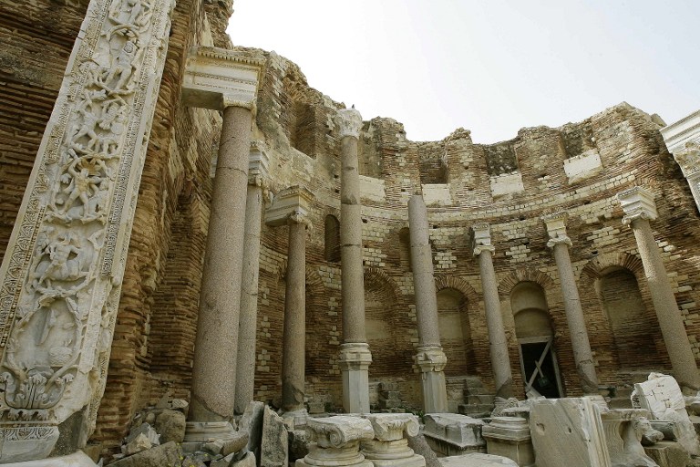 Leptis Magna site is considered one of the most spectacular and unspoiled Roman ruins in the Mediterranean region (AFP)