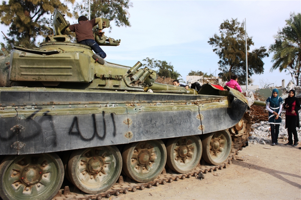 Nearly three years after an armed popular revolution in Libya toppled former strongman Muammar Gaddafi, this is how children here play. Women leaving nearby shops do not even take notice. It has become a regular sight. It even features in a public service announcement by the Ministry of Culture and Civil Society warning parents of the risks of a culture of violence among their children.