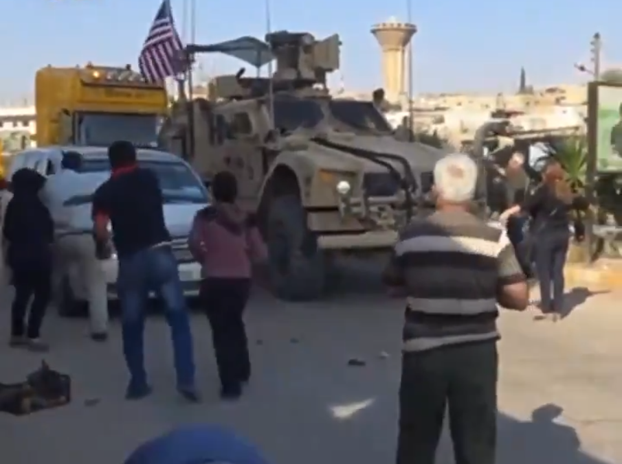 American soldiers pelted with fruit and vegetables as they exit northern Syria