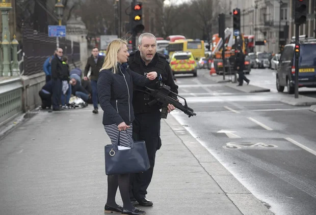 After the ramming, the car apparently moved towards parliament before crashing into railings. It was from here that the attacker moved against police before being shot dead.