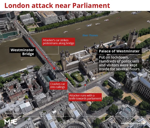 The attacker, who was named as Khalid Masood by police on Thursday afternoon, sped across Westminster Bridge in a car, ploughing into pedestrians along the way, then ran through the gates of the nearby parliament building and fatally stabbed an unarmed policeman before being shot dead.