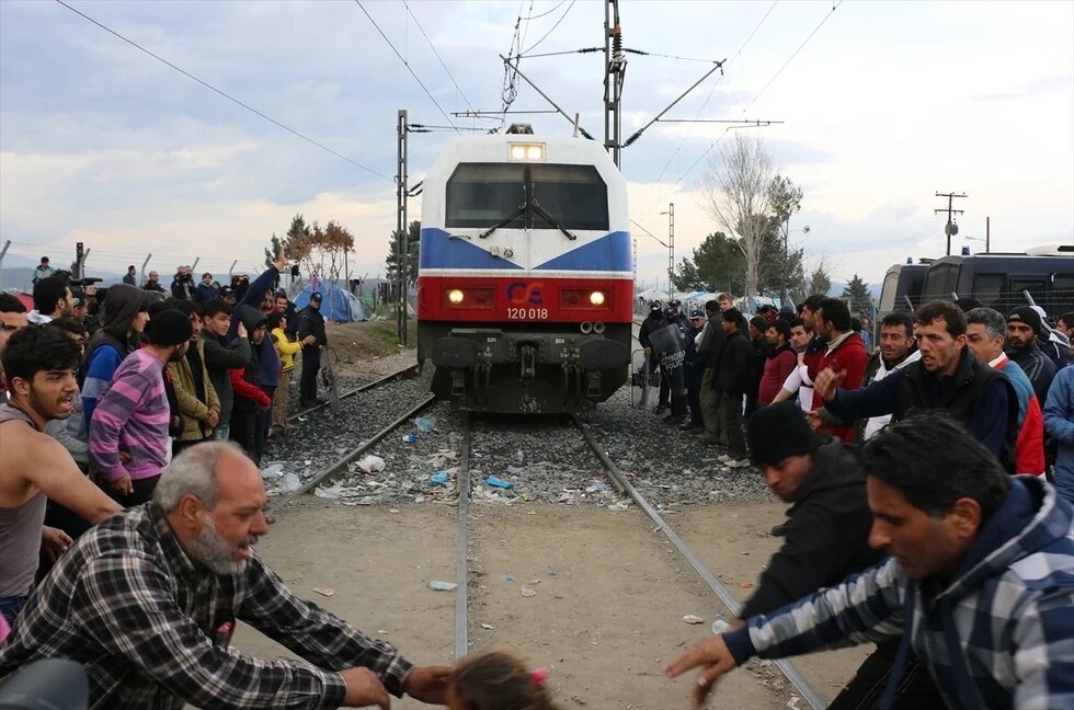 Refugees remove the railway blockade as they finish their 6 hours protest on bad conditions at the refugee camp in the Greek village of Idomeni (AA)