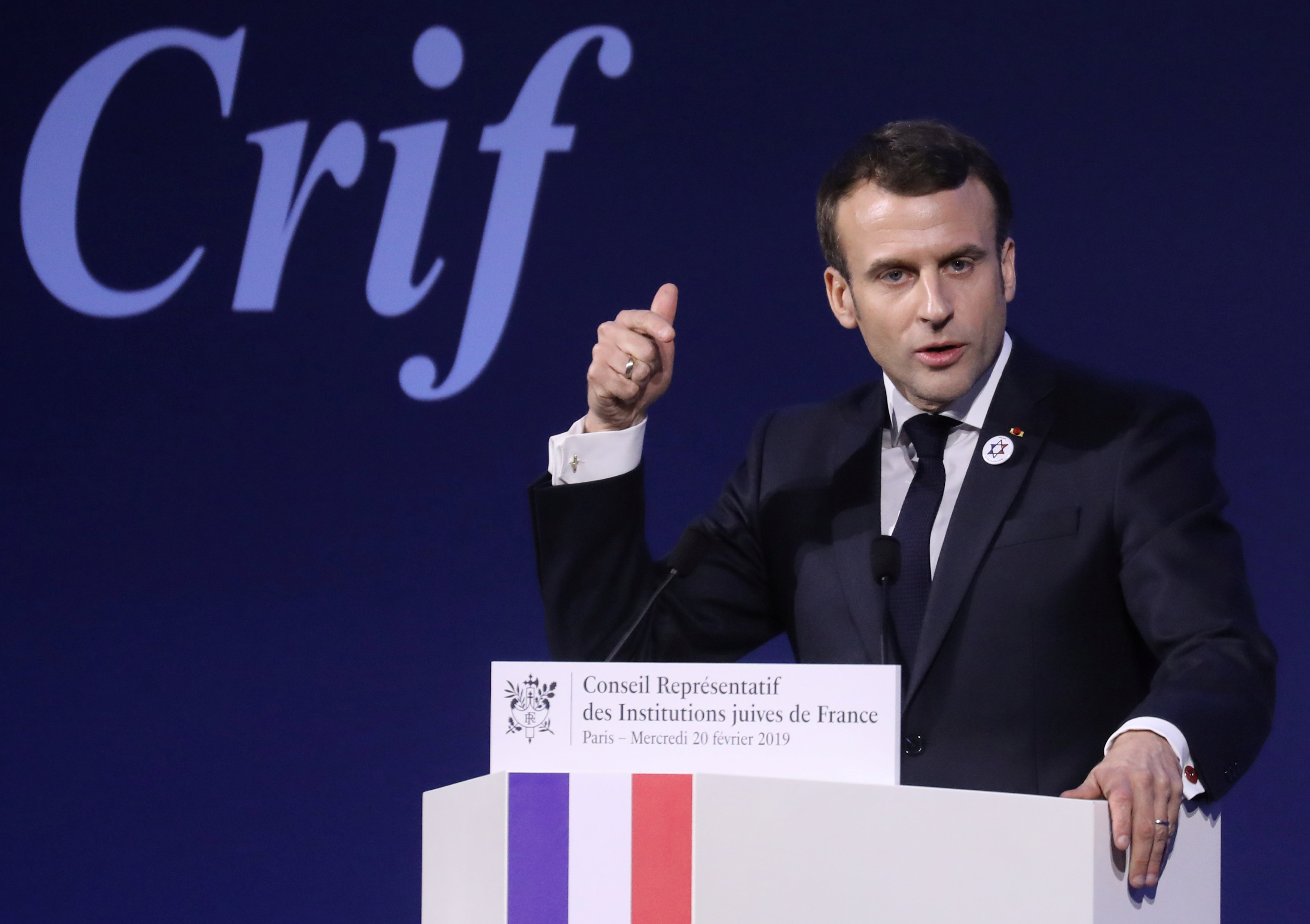Macron's comments come a day after French lawmakers introduced a bill equating anti-Zionism with anti-Semitism. The proposal came after anti-government "yellow vest" protesters hurled anti-Semitic insults towards philosopher Alain Finkielkraut.
