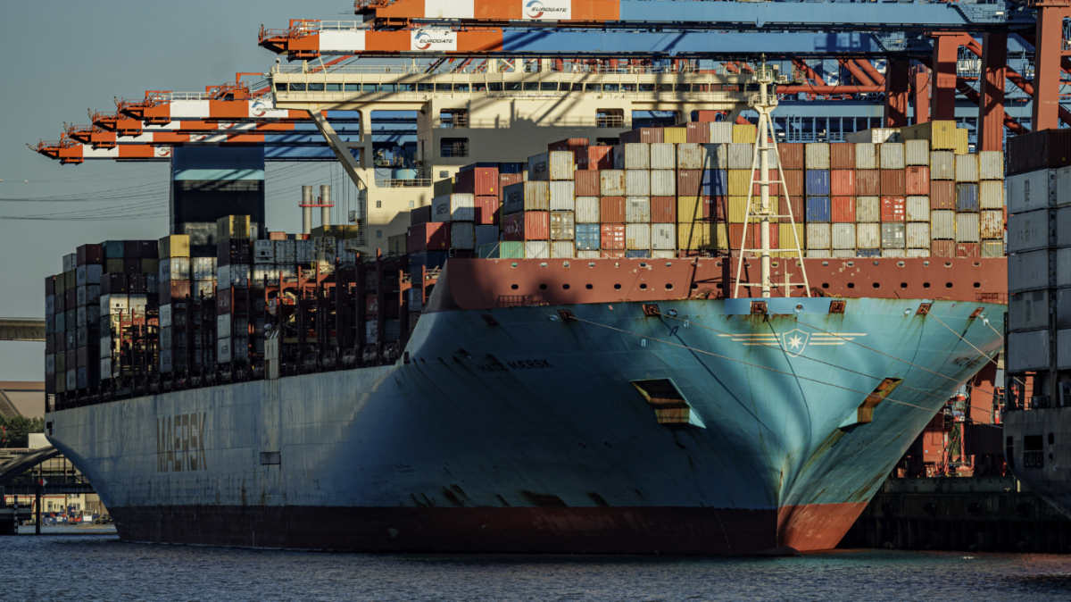 The container ship "Maersk Bratan" is discharged at the terminals of HHLA (Hamburg Port Logistics Inc) in Hamburg on 22 June 2022 (Axel Heimken/AFP)