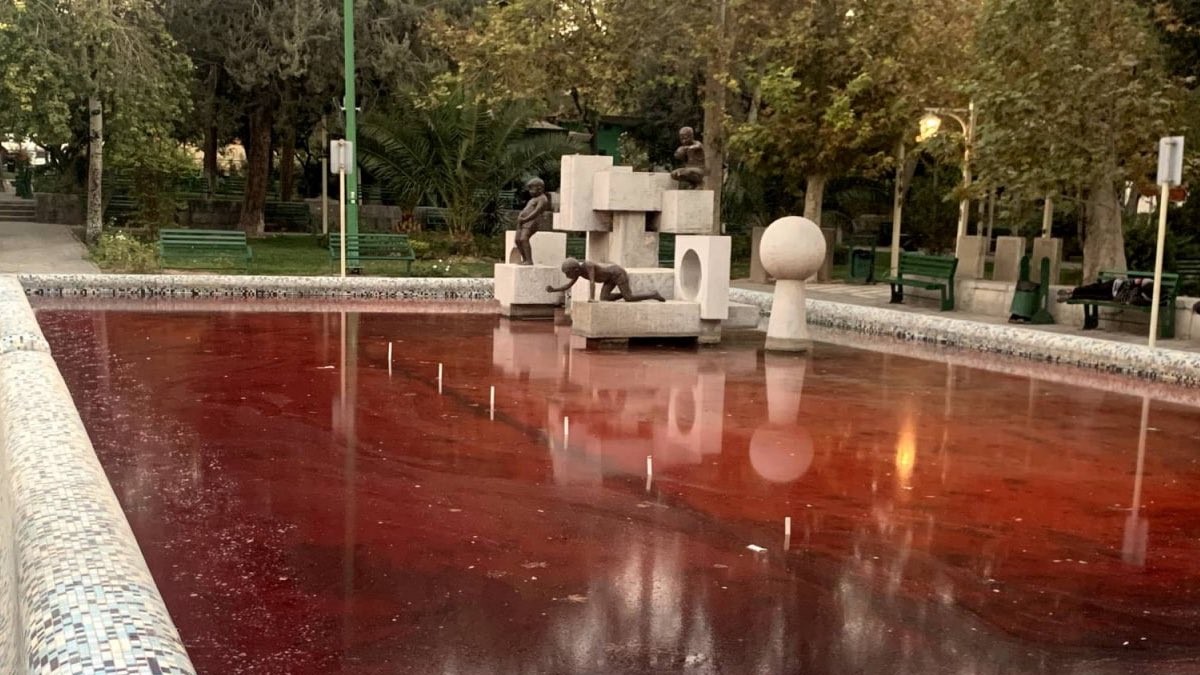 Water fountains in Daneshjoo Park, Shahr Theatre, Fatemi Square and Artists' Park in the Iranian capital were turned red as part of an artwork reportedly entitled "Tehran Covered in Blood".