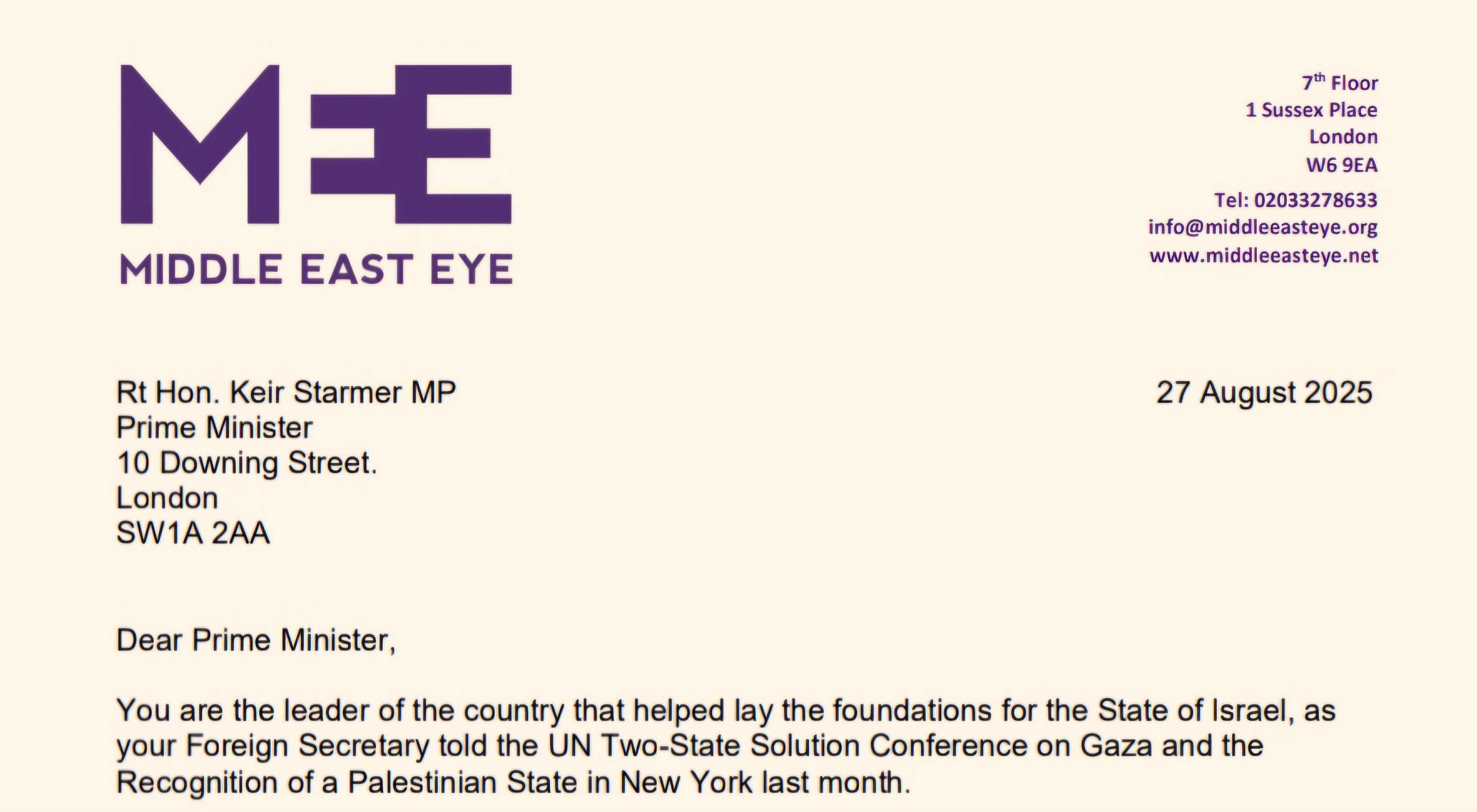 Middle East Eye's editor-in-chief, David Hearst, has written to British Prime Minister Keir Starmer with a series of questions after Israel killed two MEE journalists in Gaza on Monday morning.