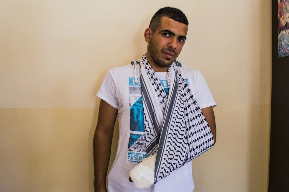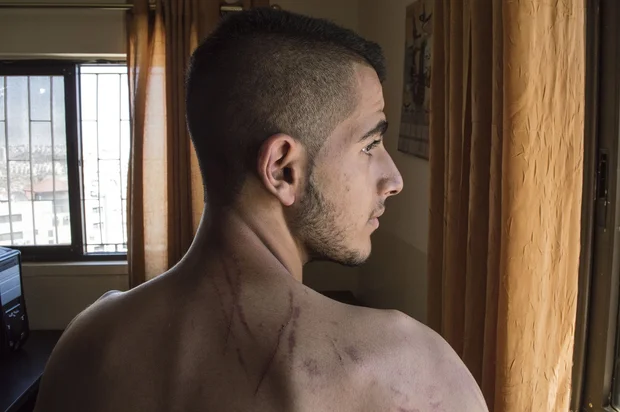 They took me and my brother to the police van and they hit us a lot there too. Then they drove us behind [nearby] Aida refugee camp to a secluded area and they pulled us out of the van and beat us there. That’s when they broke my brother’s arm. Then they took us to the police station and they hit us more.