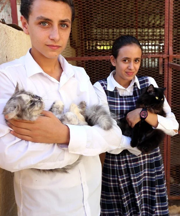 But he braved the rockets and bombs raining down around the building to reach the clinic to feed and tend to his "refugee" pets.