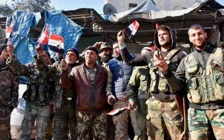 Celebrations on the government side of the divided city lasted into Monday night, with the Reuters reporter there describing the bullets coming "like rainfall" as fighters shot into the air in triumph.