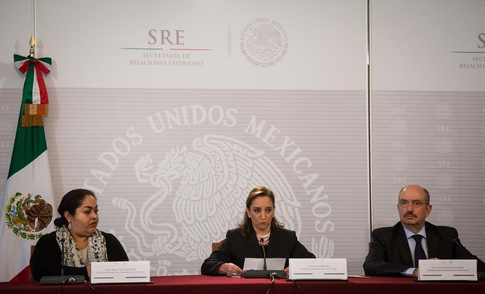 Mexican diplomats including Foreign Minister Claudia Ruiz Massieu (C) in Mexico City on 14 September (AA)