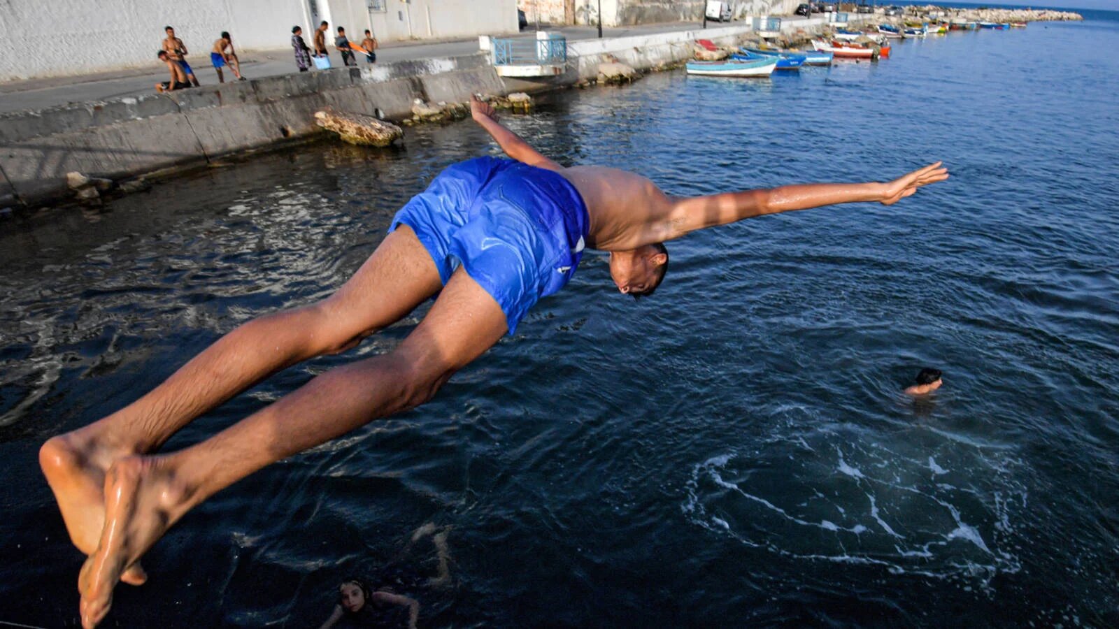 Tunisia: Swimmers dive into the Khaireddine Canal near Tunis on 17 July 2023 (AFP)