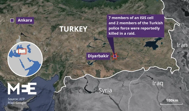 Two police officers were also killed in the incident that took place early on Monday, a source on the ground told Middle East Eye. The clashes are believed to be the first to take place between IS and Turkish security services on Turkish soil.