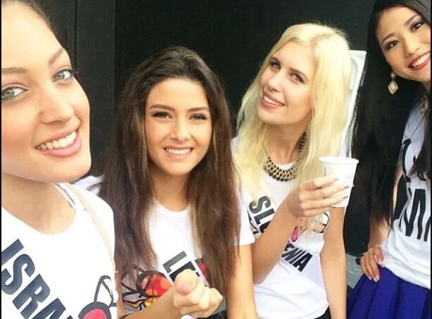 Doron Matalon, representing Israel at the competition, posted a picture of herself posing next to her Lebanese counterpart, Saly Griege, as well as the Slovenian and Japanese competitors.