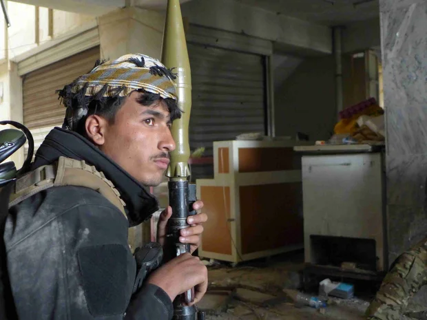 On the Corniche, forces gather alongside military vehicles. A young soldier loads a rocket into an RPG-29, a freestanding, larger-calibre version of the shoulder-held weapon.