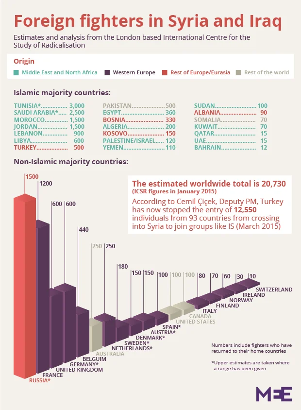 The latest figures raise serious questions about UN efforts to stem the flow of foreign militants, which the report described as an "urgent global security problem". The UN Security Council adopted a resolution in September that called on governments to make it a serious crime for their nationals to enlist as a foreign fighter.