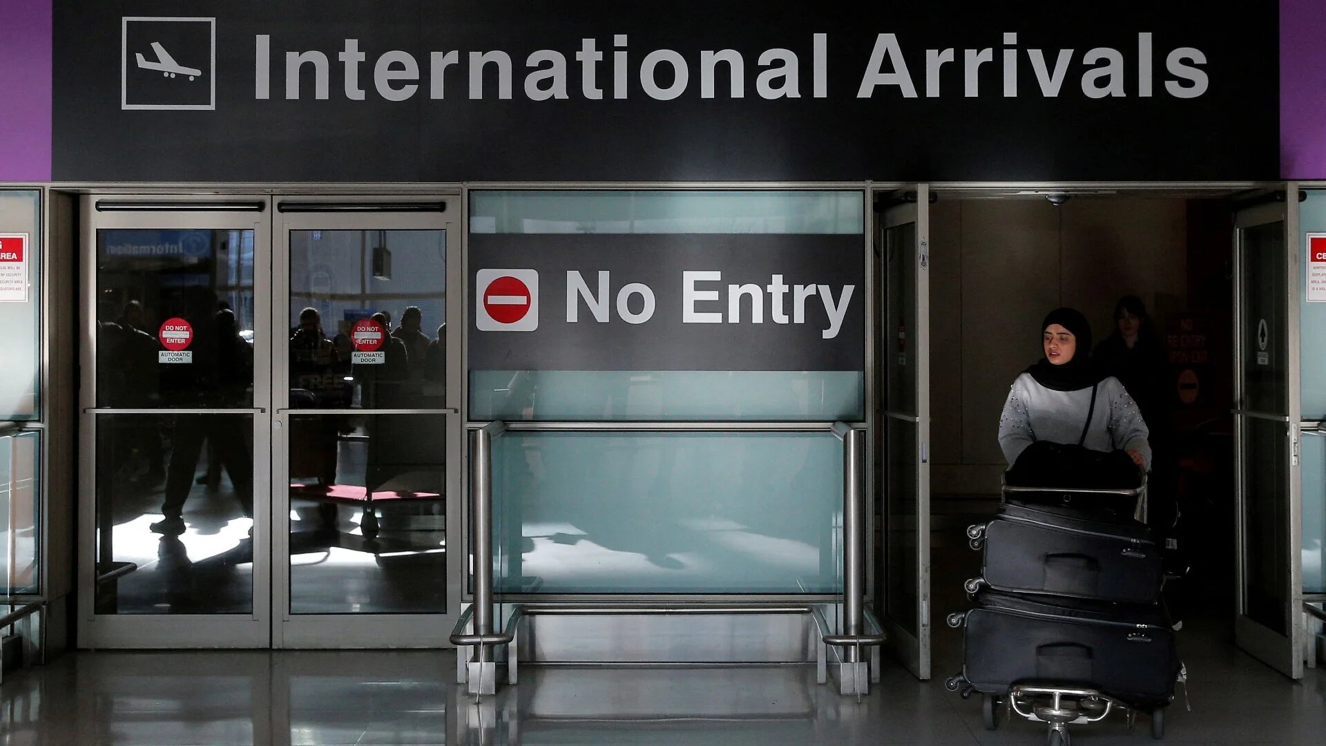 Following large-scale protests and chaos at airports, courts pushed back on the ban, leading to the first ban being blocked by a temporary restraining order in Washington v Trump in February 2017.