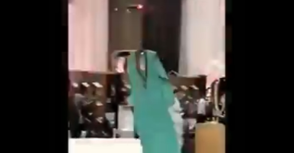 Videos floating around the internet show upscale gowns drifting across the air in Saudi Arabia, propelled by drones (Screenshot)