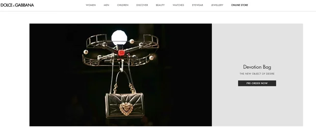 A screenshot on Dolce & Gabbana's website touting tote-toting drones